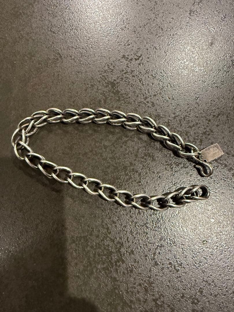 《ブランド名》OLD TIFFANY《アイテム名》ヘビー トグル ダブルボールチェーンブレスレット《アイテム説明》ティファニーのブレスレットになります。2連デザインのボールチェーンブレスレット。軸に蛇腹をモチーフにしたスネークチェーンが使われており、そこに大ぶりのボールがデザインされいます。着用時に動きに合わせてボールが動き、隙間からスネークチェーンが覗くオシャレなデザインです。金具部分はスクエアクッション型に歪曲したTバーを使用したティファニーらしいデザイン。大ぶりのボールチェーンを2連にしている為、約53gとヘビーウェイトアイテムでボリュームも抜群です。ティファニーのアイテムでは希少な男性が着用しても余裕のあるサイズ感となっています。《ランク》B(オールド、ビンテージは年代を考慮してのランクとなります。) S →→→未使用品、新品A →→→状態の綺麗な物、使用感の少ない物B →→→一般的な中古品、多少汚れ、使用感がある物C →→→ダメージや使用感が目立つ物J →→→ジャンク品、本来の用途で使用出来ない物《状態》スネークチェーンの隙間にくすみが多少、金具に小キズが多少ありますが、全体的に綺麗な状態です。《備考》箱、保存袋が付属します。 ブランド刻印 925刻印 デザイナー刻印 コピーライト《重量》約53g(卑金属、体感で20g未満は計測してません。)《実寸》多少の誤差はご了承ください。全て平置きにて採寸しております。※cm表記 全長・・・22(金具も含めた全ての長さ) 長さ・・・16.5(チェーン部分のみの長さ) 幅・・・0.6×2(チェーンの幅) ※着用モデルの手首周りは約16cmになります。こちらはあくまで中古品となりますので神経質な方はご遠慮下さい。
